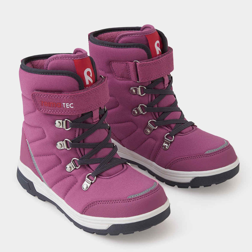 Эти зимние ботинки для детей отличает не только отличный внешний вид, но и высокое качество обуви Reimatec. Верхняя часть изделия выполнена из стильной и прочной смеси кожи и синтетического материала, водонепроницаемая конструкция позволяет ногам оставаться сухими, а мягкая флисовая подкладка и теплая войлочная стелька дольше сохраняют тепло. Стелька Happy Fit поможет подобрать нужный размер. Благодаря застежке-липучке и эластичной шнуровке обувь легко надевать и снимать.