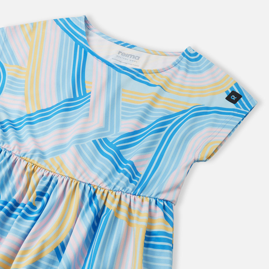 В этом удобном платье длиной до колена активным детям будет прохладно во время игр на улице. Эластичный и тянущийся материал обеспечивает защиту от ультрафиолета, а специальная пропитка Xylitol Cool от Reima на основе ксилита и эритрита (пищевых подсластителей) оказывает ощутимый охлаждающий эффект. Эластичный пояс придает модели стиль и комфорт в движении. Чтобы обеспечить дополнительную защиту от ультрафиолета, нанесите солнцезащитный лосьон на открытые участки кожи и убедитесь, что дети надевают легкую кепку или панаму и солнцезащитные очки, когда играют на солнце.