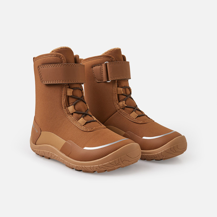 Ноги вашего малыша будут в тепле и сухости с водоотталкивающими зимними ботинками Barefoot Talvella Kids. Эти ботинки гарантируют сухие и теплые ноги благодаря водонепроницаемой мембране и хорошему утеплению. Простая застежка на липучке и эластичная шнуровка обеспечивают идеальную посадку, а гибкая резиновая подошва со специальными шипами Reima Ice Studs обеспечивает отличное сцепление. Светоотражающие детали улучшают заметность ребенка в сумерках и условиях плохой видимости. Бонус — они не содержат продуктов животного происхождения и поставляются со съемными стельками. Более широкая колодка гарантирует дополнительное место для пальцев. Модель имеет плоскую, без возвышения под пятой, подошву, толщина которой составляет 9,5 мм, состоящая из встроенных стелек Reima Arctic (3 мм) с аэрогелевой изоляцией для дополнительного тепла, основания подошвы (3 мм) и протектора (3,5 мм).