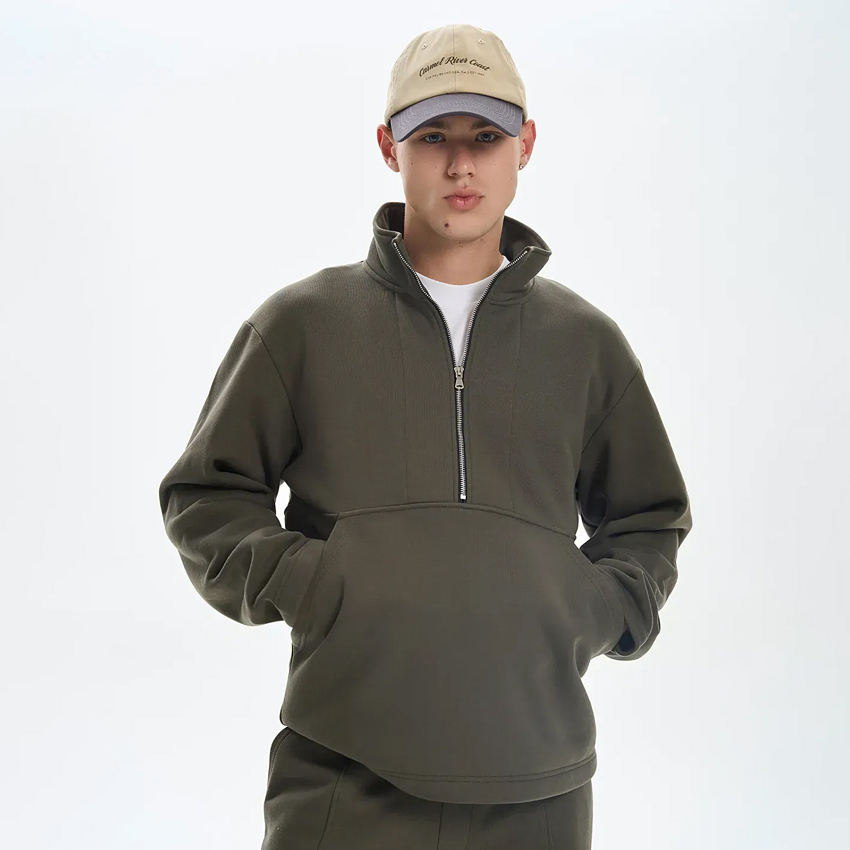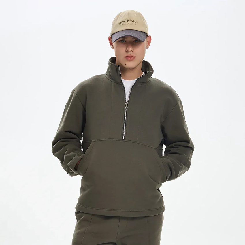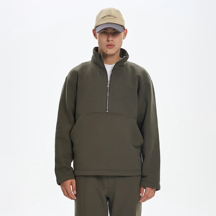 Мужская утепленная толстовка свободного кроя с высокой горловиной и молнией до середины переда - практичный выбор для холодного времени года. Модель без капюшона, рукава и низ выполнены без манжет, что придает изделию лаконичность и современный вид. Спереди расположен большой сквозной карман, который обеспечивает удобство и подчеркивает спортивный характер модели. Толстовка прекрасно сочетается с утепленными штанами из нашего ассортимента, создавая комфортный и стильный образ.