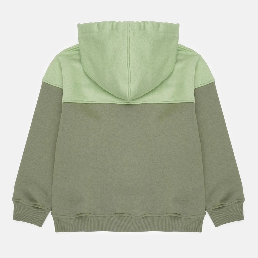 Теплое детское худи в стиле колорблок – яркий и удобный вариант для холодного времени года. Модель с капюшоном со шнурком обеспечивает дополнительный комфорт и защиту от ветра, а манжеты на рукавах и по низу удерживают тепло. Отсутствие карманов сохраняет лаконичный силуэт и делает худи еще более практичными для ежедневного ношения. Мягкий футер с начесом приятный для тела и обеспечивает уют во время активных прогулок и отдыха.
