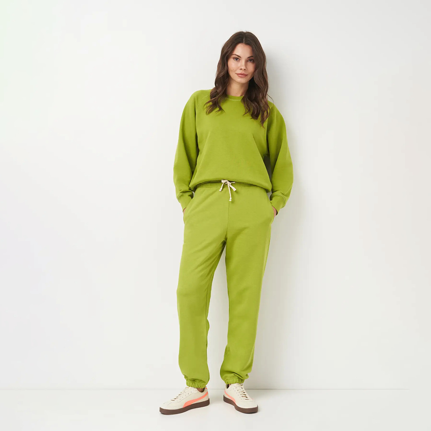 Базовые джоггеры стандартной посадки и свободного кроя не сковывают движения. Удобный пояс с мягкой резинкой обеспечит идеальную посадку и комфорт при ношении.