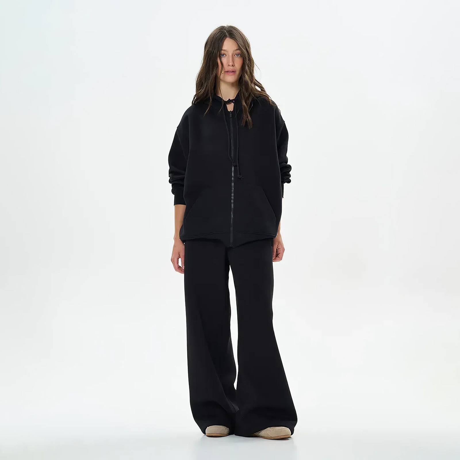 Теплые женские брюки широкого кроя предназначены для комфорта и уюта в прохладное время года. Мягкий трикотаж с начесом приятно греет, сохраняя свободу движений и легкость в носке. Удобный пояс на резинке со шнурком позволяет регулировать посадку, а боковые карманы придают практичность. Лаконичный фасон делает эту модель универсальной основой для зимнего гардероба – брюки прекрасно сочетаются с зип-худи и свитшотами из нашего ассортимента.