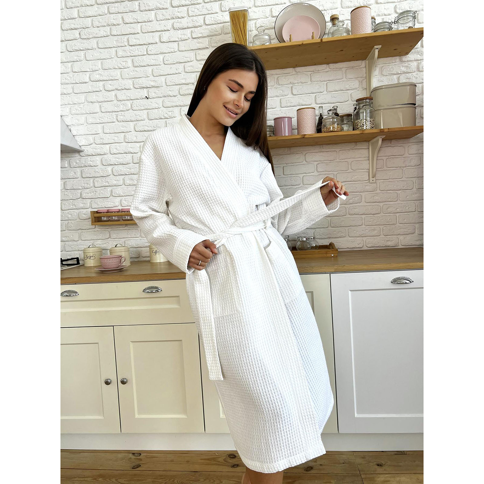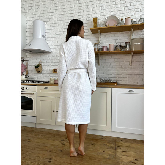 Вафельная ткань не только дарит приятные ощущения на коже, но и быстро поглощает влагу. Благодаря длинному крою халат красиво окутывает фигуру, подчеркивая женственность и одновременно обеспечивая максимальный комфорт в ежедневном использовании.