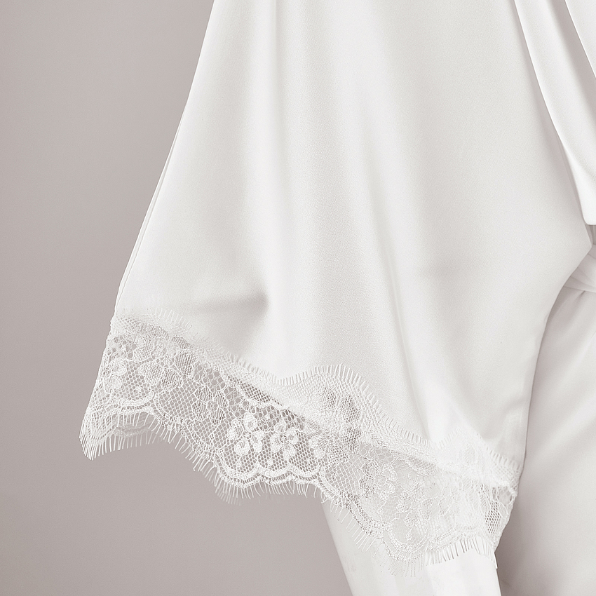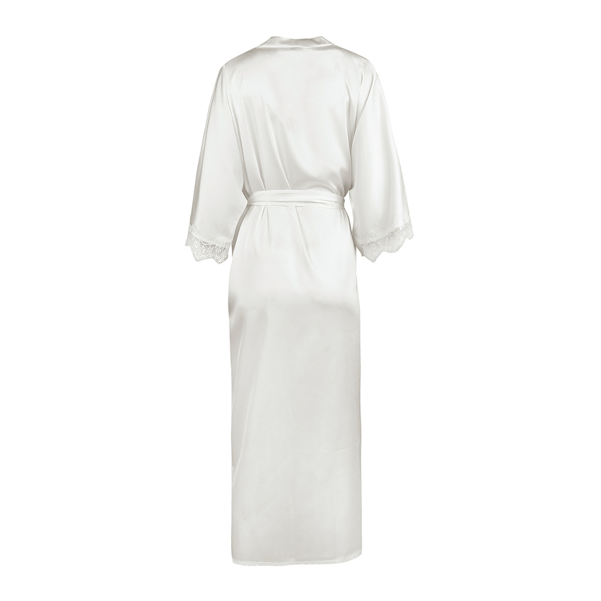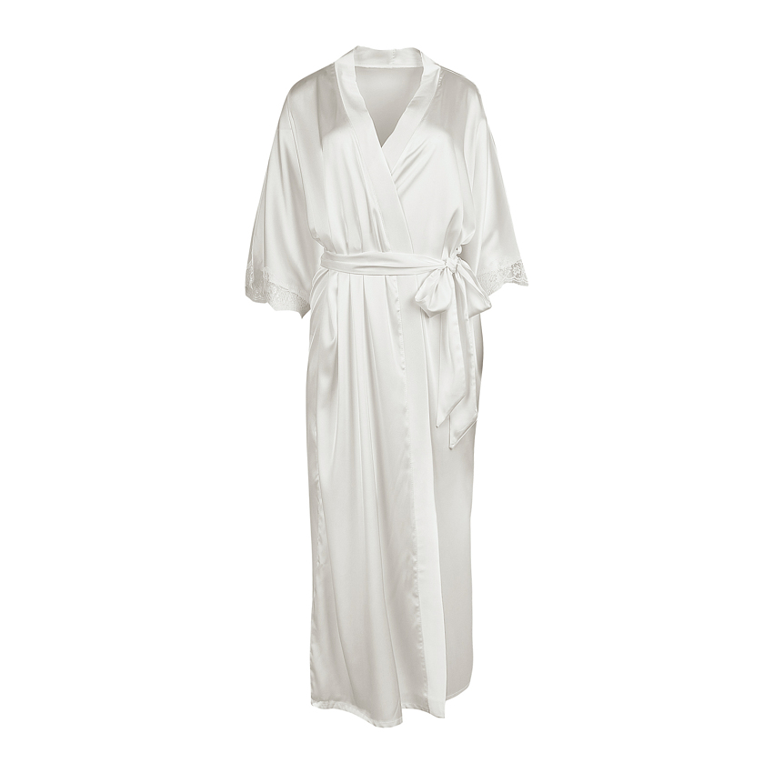 Халат-кимано из армированного шелка. Длинный шелковый халат декорирован кружевом по рукаву.