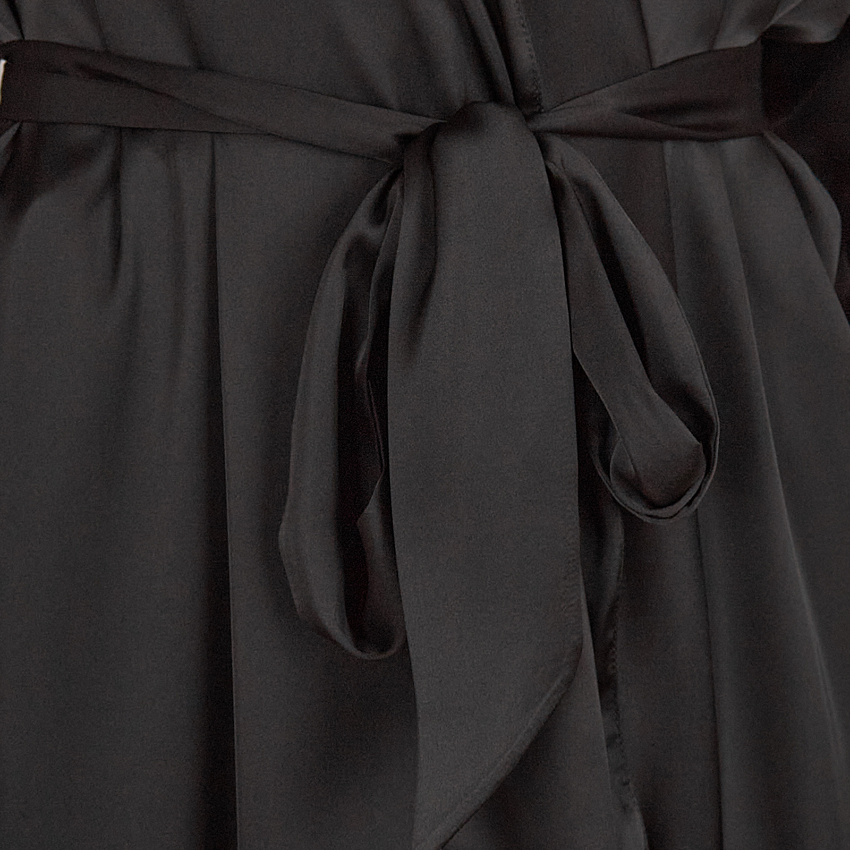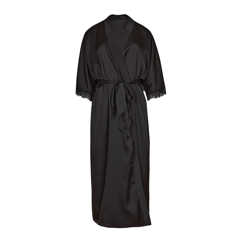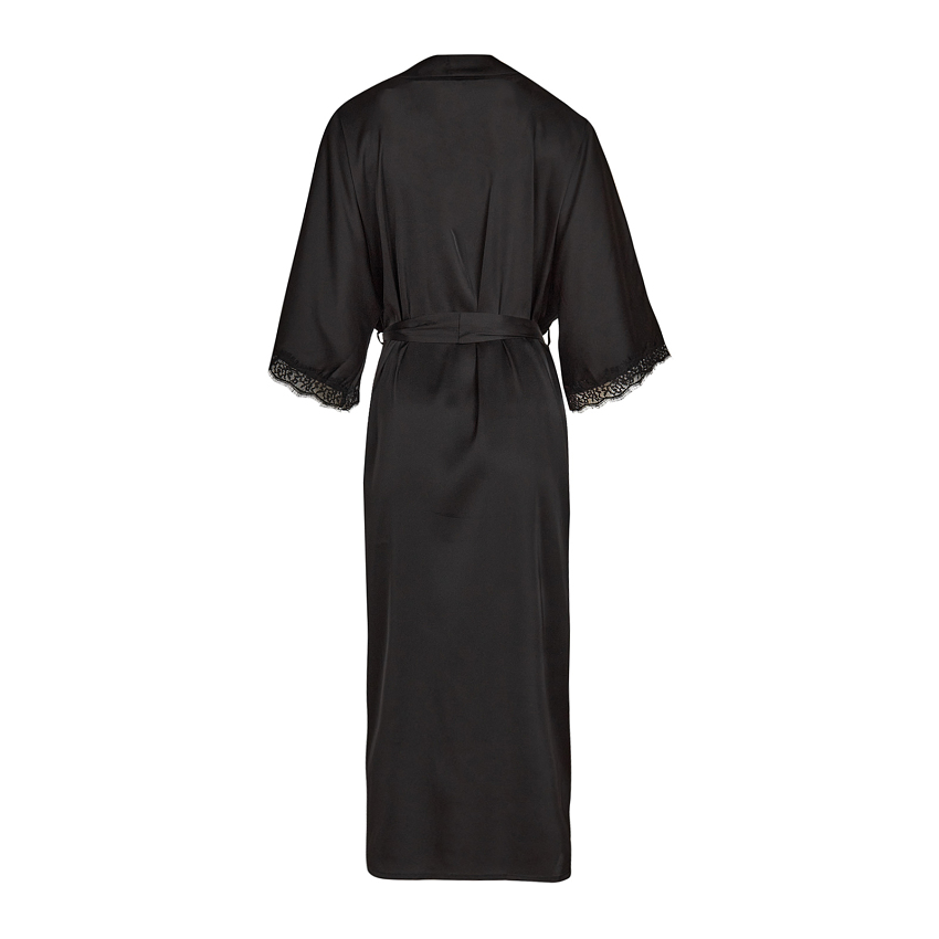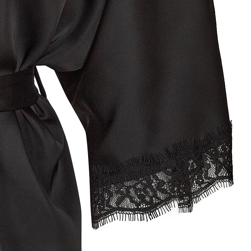 Халат-кимано из армированного шелка. Длинный шелковый халат декорирован кружевом по рукаву.