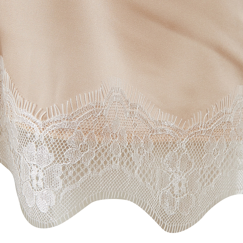 Рубашка из шелка Армани средней длины, свободного силуэта. Лиф и разделение изделия декорировано кружевом.
