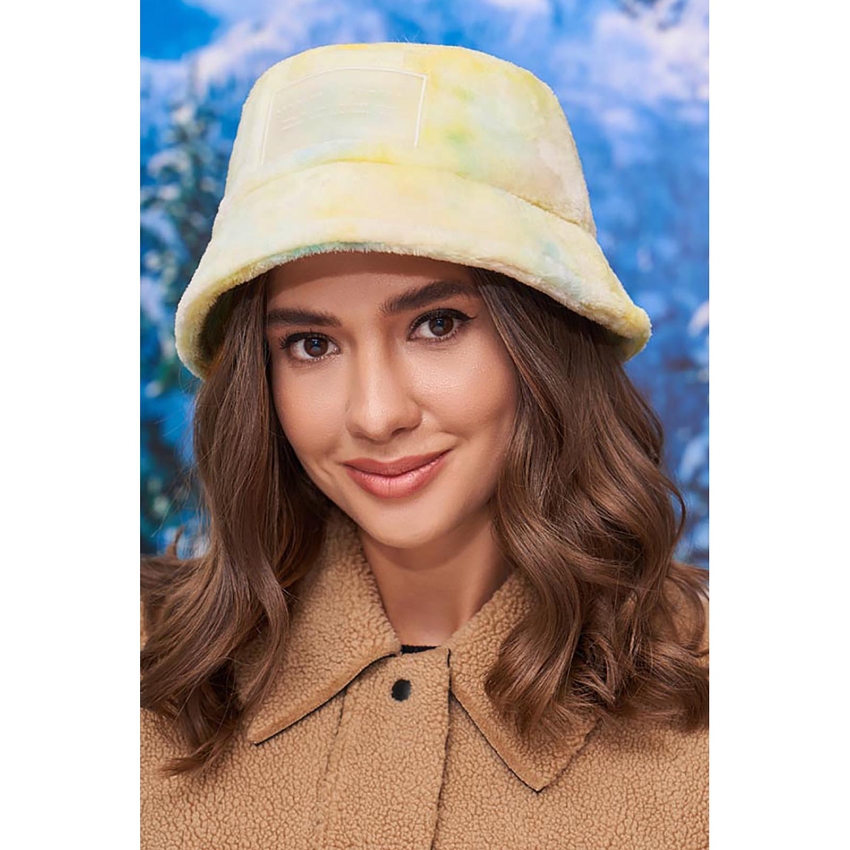 Панама меховая в расцветке тай-дай (6081) (желтый + голубой + персиковый)