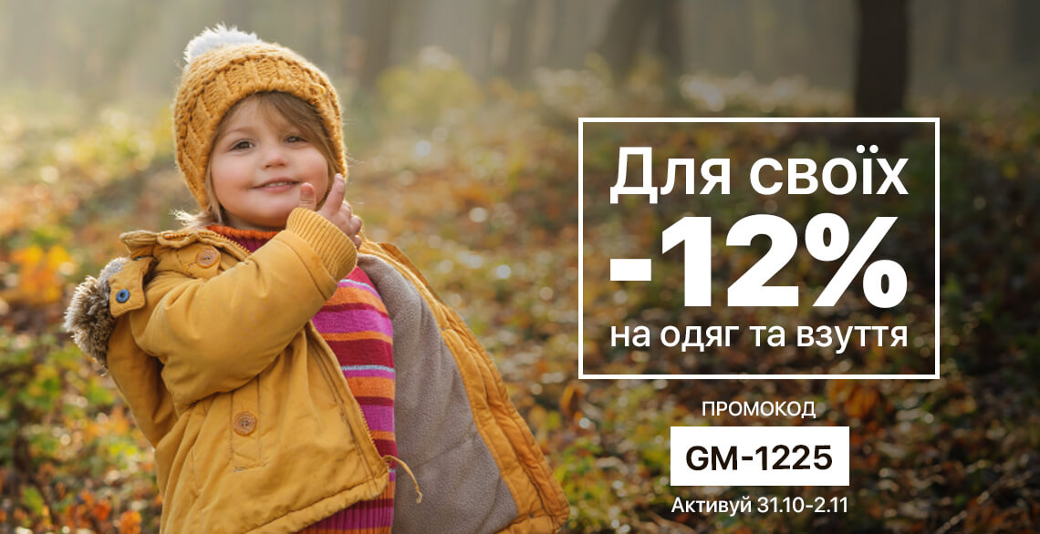Отримайте знижку 12% на одяг та взуття без акційної ціни (товари без відмітки зі знижкою чи напису SALE)
