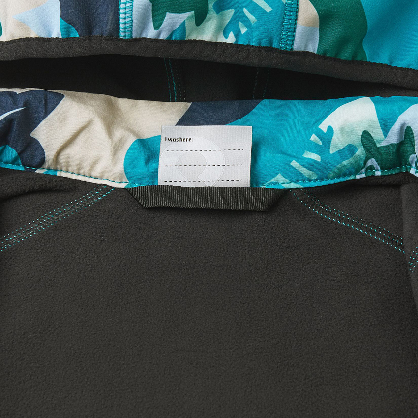 Softshell GRS: лицьова частина: 92% поліестер, 8% еластан; виворітна сторона: 100% перероблений поліестер, поліуретанова мембрана