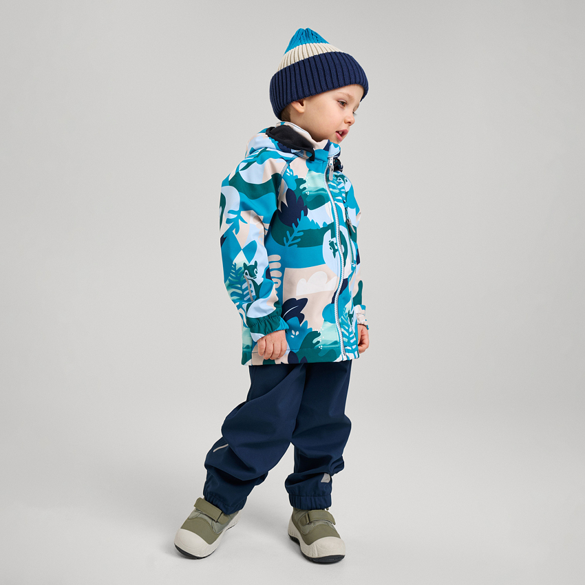 Дитяча класична куртка виготовлена з водо- та вітронепроникного матеріалу Softshell з брудовідштовхуючою поверхнею. Ця демісезонна куртка стане ідеальним вибором для холодних весняних та осінніх днів. М'який та еластичний матеріал Softshell дарує відчуття комфорту. У двох кишенях знайдеться місце для всіх дрібниць. Завдяки еластичним складкам на рукавах та подолі куртка чудово сидить. Без підкладки.