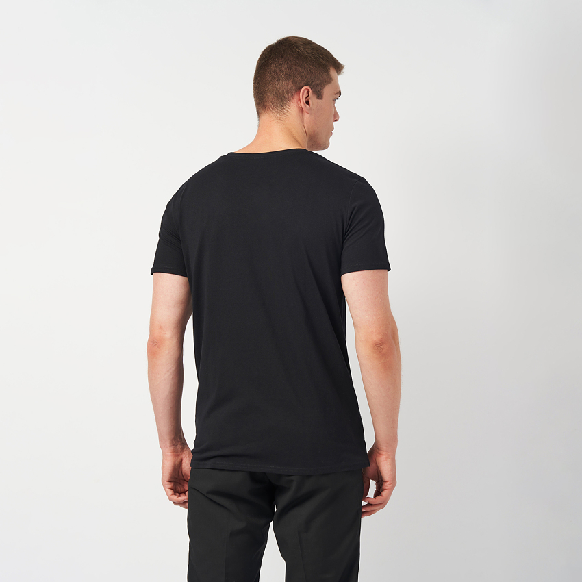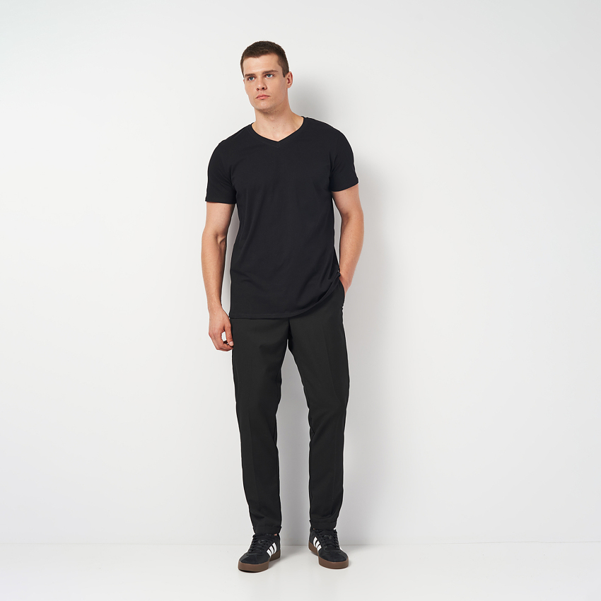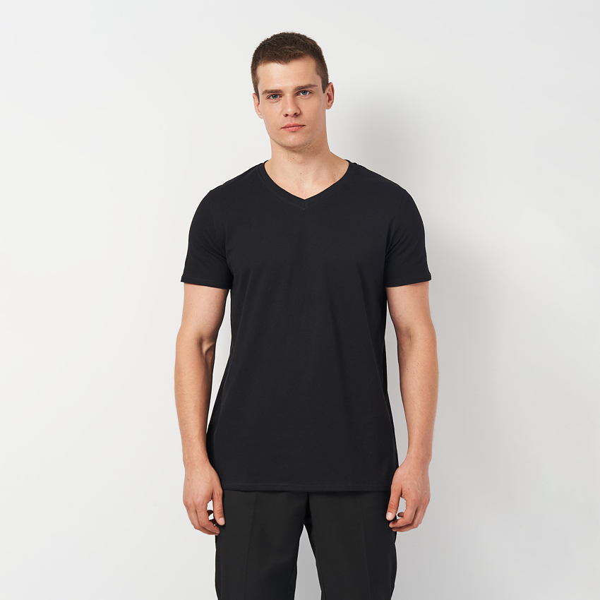 Чоловіча бавовняна футболка з V-подібним вирізом – це класичний елемент гардероба, що поєднує стиль та комфорт. Вона виготовлена з м'якої, дихаючої бавовни, яка забезпечує приємне відчуття на шкірі і хорошу повітропроникність. V-подібний виріз надає футболці елегантності та підкреслює шию, роблячи її більш витонченою. Футболка має стандартний крій, добре сідає на тіло, не обмежуючи рухів.