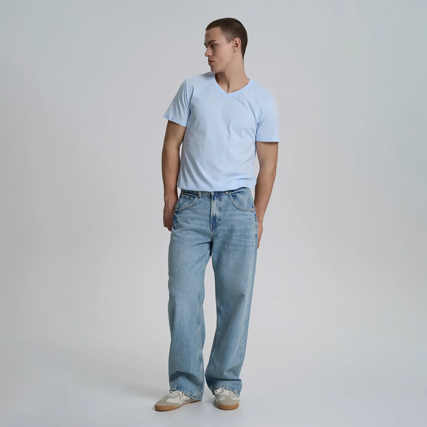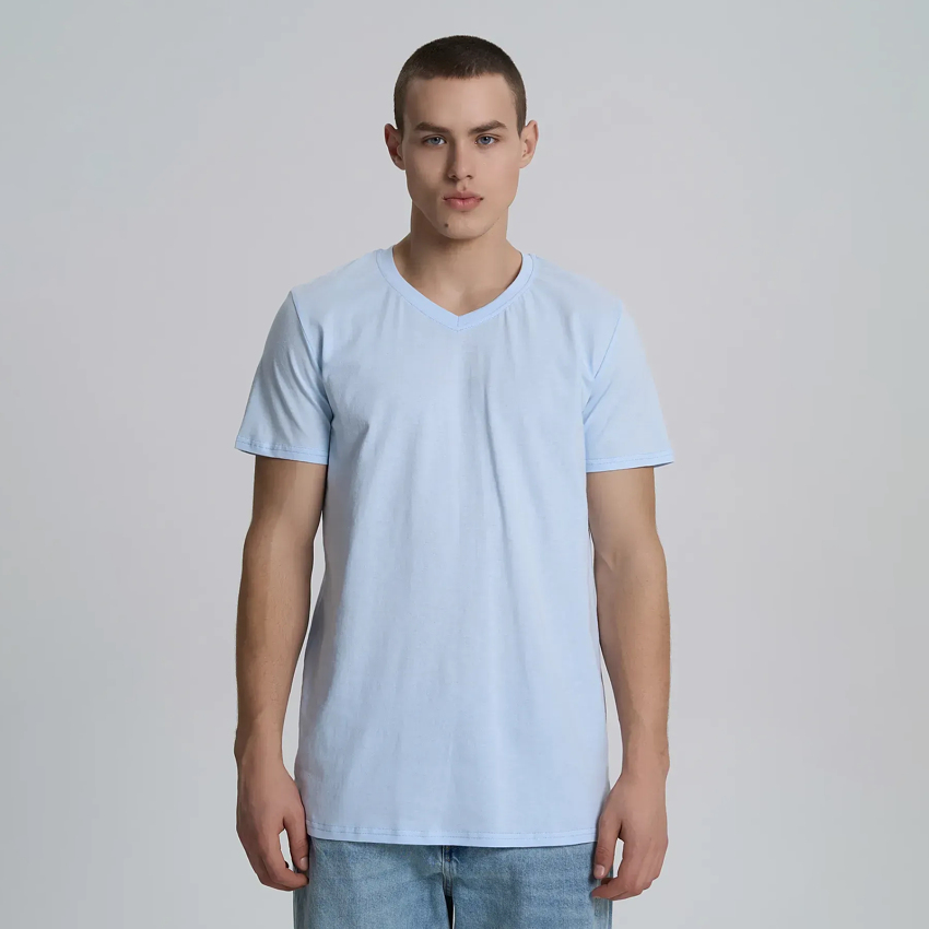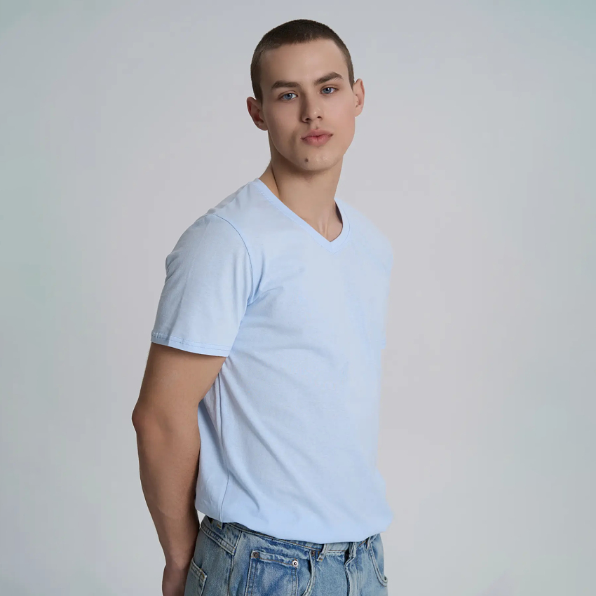Чоловіча бавовняна футболка з V-подібним вирізом – це класичний елемент гардероба, що поєднує стиль та комфорт. Вона виготовлена з м'якої, дихаючої бавовни, яка забезпечує приємне відчуття на шкірі і хорошу повітропроникність. V-подібний виріз надає футболці елегантності та підкреслює шию, роблячи її більш витонченою. Футболка має стандартний крій, добре сідає на тіло, не обмежуючи рухів.