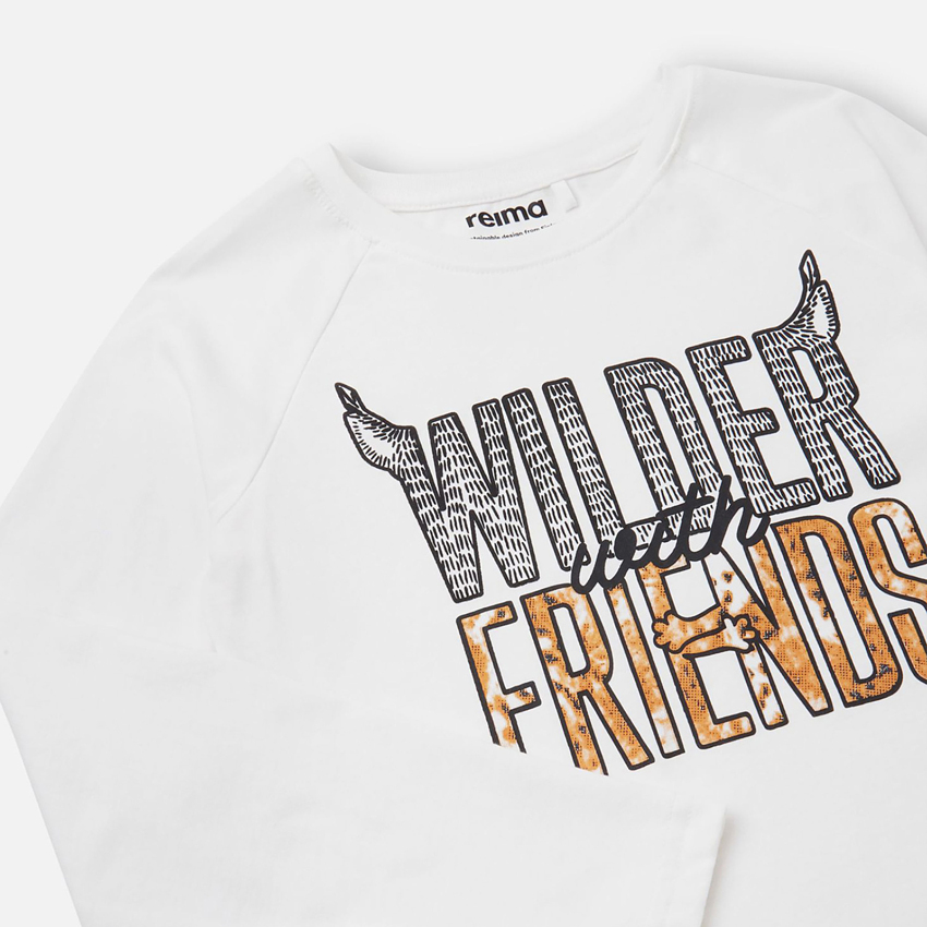Лонгслів в анімалістичному стилі із милим слоганом Wilder With Friends («Неприборкані веселощі з друзями!»). Цей затишний лонгслів Reima виготовлений зі 100% органічної бавовни. Органічна бавовна має чудові дихаючі властивості завдяки натуральним, легким волокнам. Малята завжди відчуватимуть комфорт, навіть якщо спітніють під час гри.