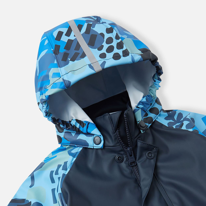 Дитячий комбінезон-дощовик Reima з гладкою трикотажною підкладкою забезпечує повний захист від дощу та бруду. Шви запаяні й абсолютно водонепроникні, а еластичний матеріал не твердішає на морозі, тому її можна носити весь рік поверх демісезонного одягу або зимового комбінезону. Одяг для дощу Reima виготовляється з матеріалу, що не містить ПВХ. Безпечний капюшон, що відстібається, захистить від зливи. Образ довершує блискавка спереду на всю довжину і безліч деталей, що відбивають світло. Ми готові до дощових днів!