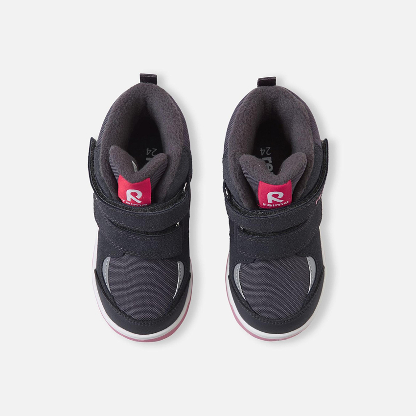 Ці зимові черевики для малюків відрізняє не тільки відмінний зовнішній вигляд, а й висока якість взуття Reimatec. Верхня частина виробу виготовлена зі стильного та міцного поєднання шкіри та синтетичного матеріалу, водонепроникна конструкція дозволяє ногам залишатися сухими, а м'яка флісова підкладка та тепла повстяна устілка довше зберігають тепло. Устілка Happy Fit допоможе підібрати необхідний розмір. Завдяки застібці-липучці взуття легко вдягати та знімати.