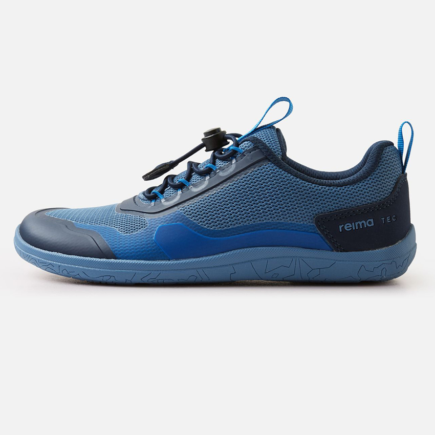Водовідштовхуючі кросівки Reimatec Tallustelu збережуть ноги сухими, а дітей щасливими, а також підтримують правильний розвиток стопи завдяки широкій колодці Reima Barefoot з додатковим місцем для пальців. Колодка в цій моделі досить широка, щоб усі пальці ніг росли прямо, а підошва не має підвищення під п'ятою, що дозволяє дітям відчути більш природну стійку та спокійну ходьбу. Підошва тонка, всього 4 мм, і гнучка, що дозволяє краще відчувати землю та активізувати м'язи стопи. Завдяки зручним знімним устілкам та легким еластичним шнуркам це відзначене нагородами взуття є найкращим вибором для Barefoot-комфорту у мінливу погоду.