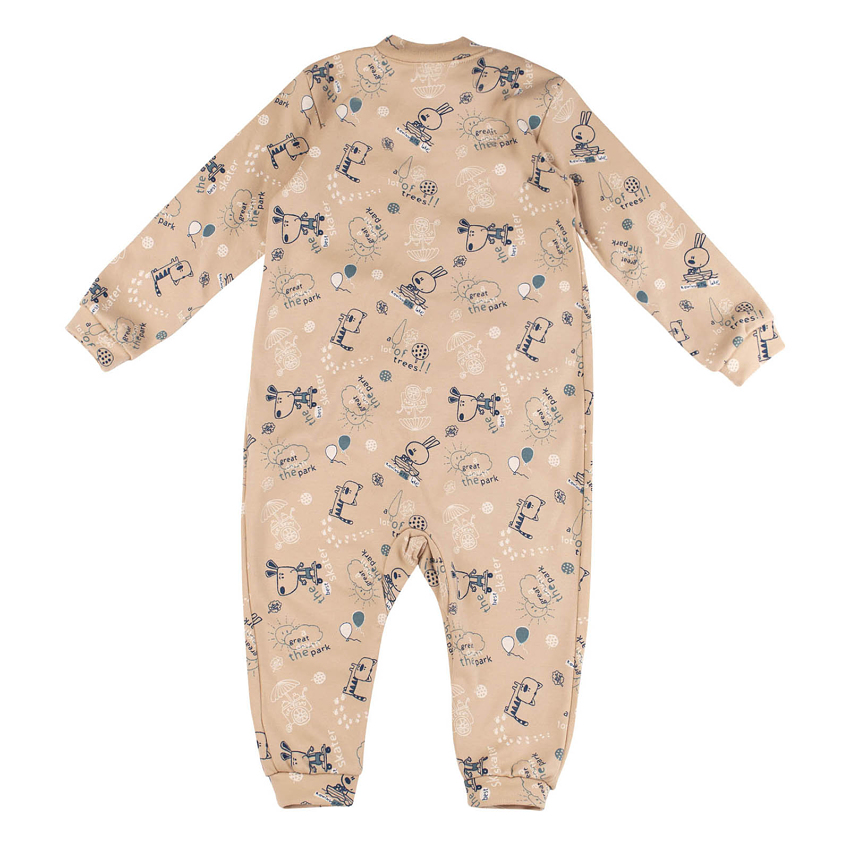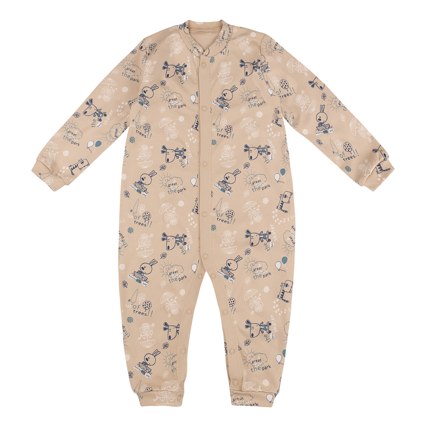 Універсальний комбінезон для новонароджених. Довгий рукав на манжетах. Горловина кругла класична. Застібається на кнопки по всій довжині. Тканина м"яка та приємна на дотик. На однотонному виробі друк.