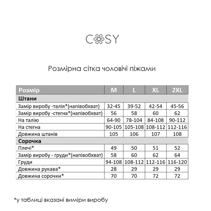 Комплект складається з рубашки на гудзиках з коротким рукавом та штанів. Виготовлений із натурального мусліну, він відрізняється своєю легкістю та дихаючими властивостями. Тканина м'яка на дотик і приємна до тіла, що дозволяє шкірі "дихати" та запобігає перегріву навіть у спекотні дні.