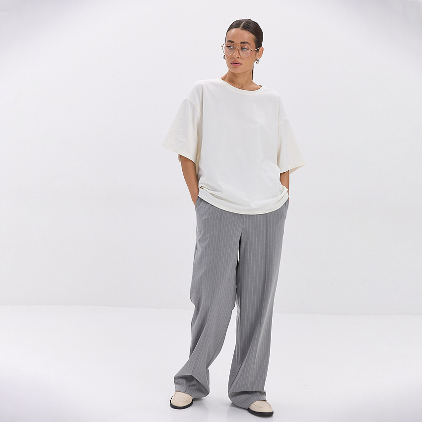 Матеріал Костюмна тканина Склад 70% поліестер, 28% віскоза, 2% еластан Довжина по боковому шву 112 см Довжина по внутрішньому шву S-M - 81 см; L-ХL - 80,5 см Ширина по поясу S-M - 50 см; L-ХL - 54 см Ширина по стегнам S-M - 54 см; L-ХL - 58 см Силует Прямий