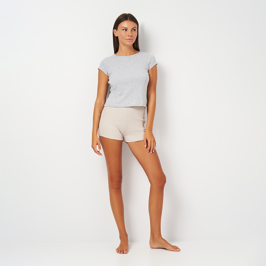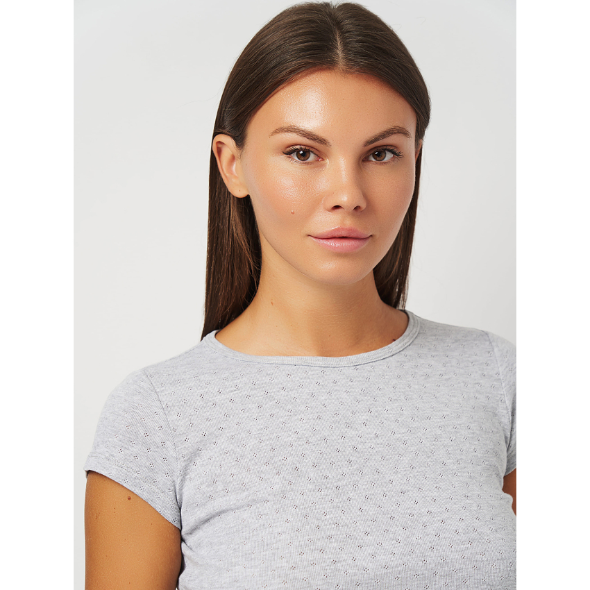 Домашня жіноча футболка з колекції "Romance" виготовлена з перфорованої рібани. Склад тканини 100% бавовна, що забезпечує максимальний комфорт і ніжність на дотик. Перфорація додає футболці елегантності та жіночності, роблячи її не лише зручною, але й стильною.