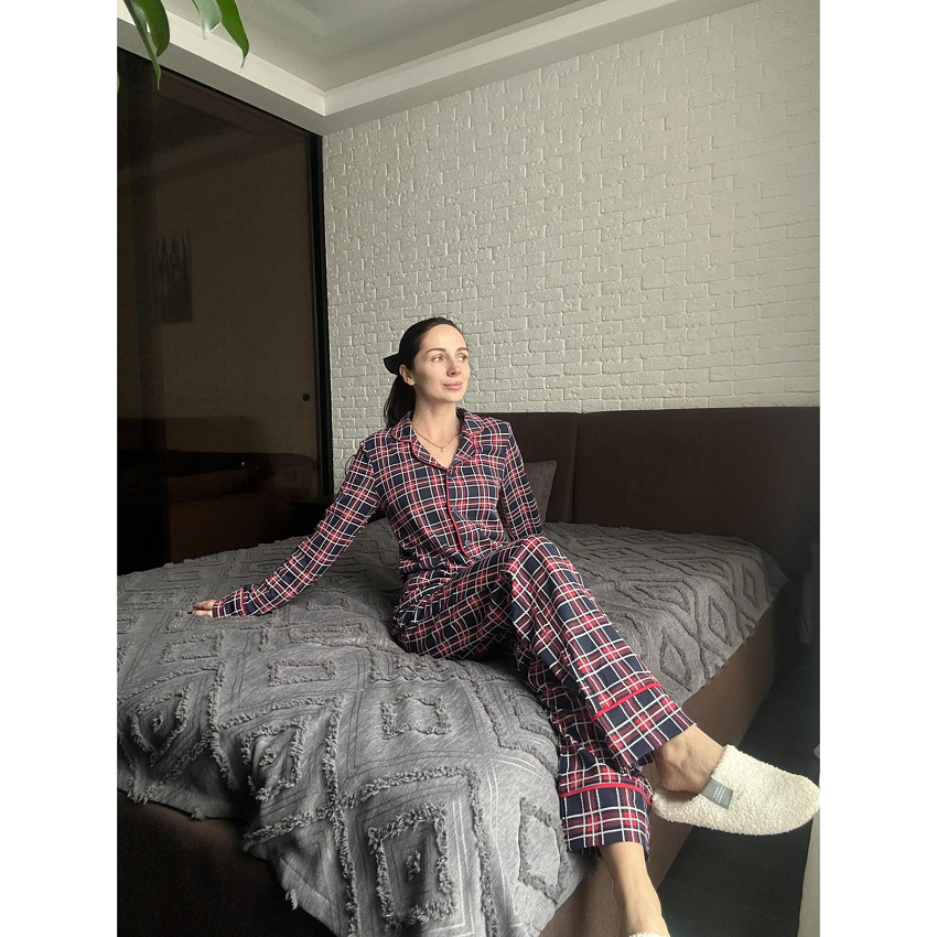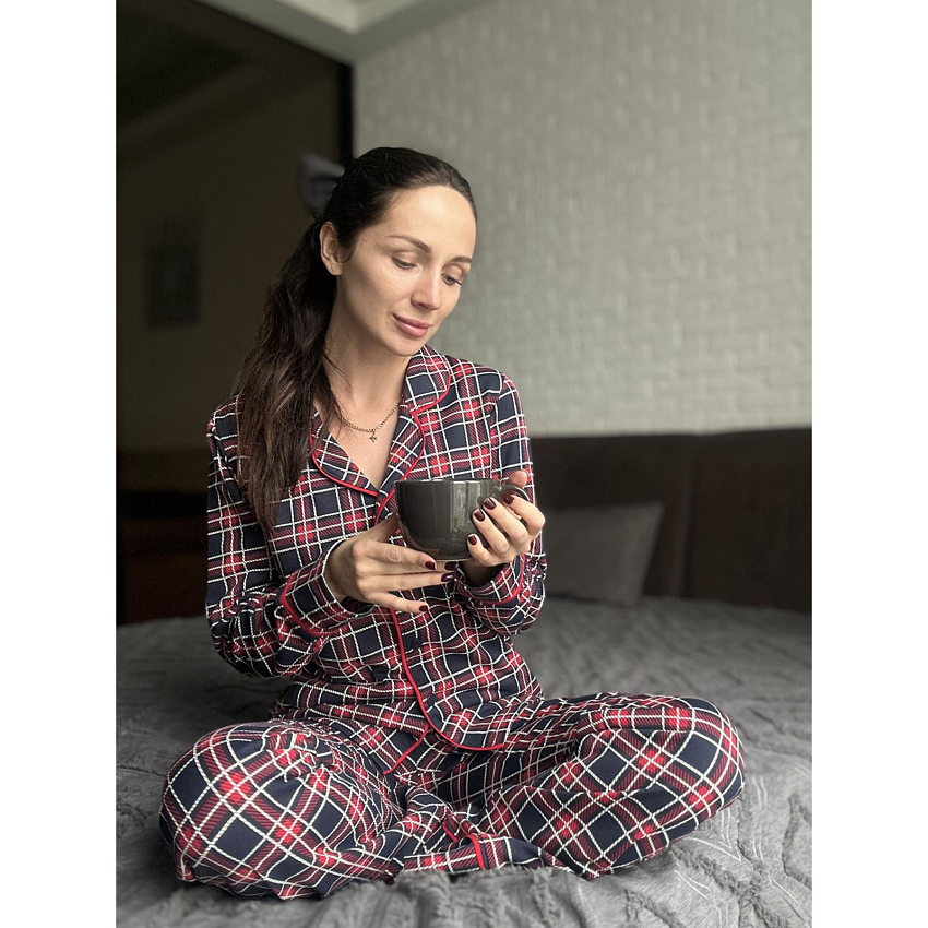 Тепла піжама з сорочкою на гудзиках і штанами — справжній оберіг тепла та затишку для холодних вечорів.
