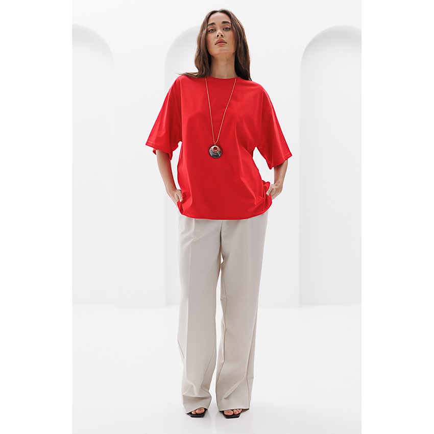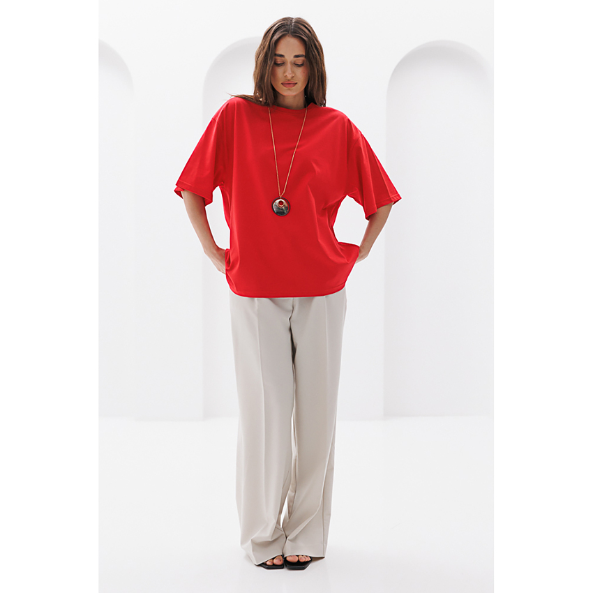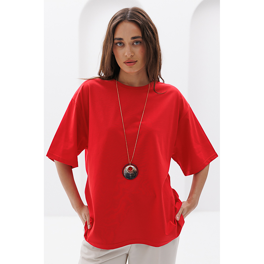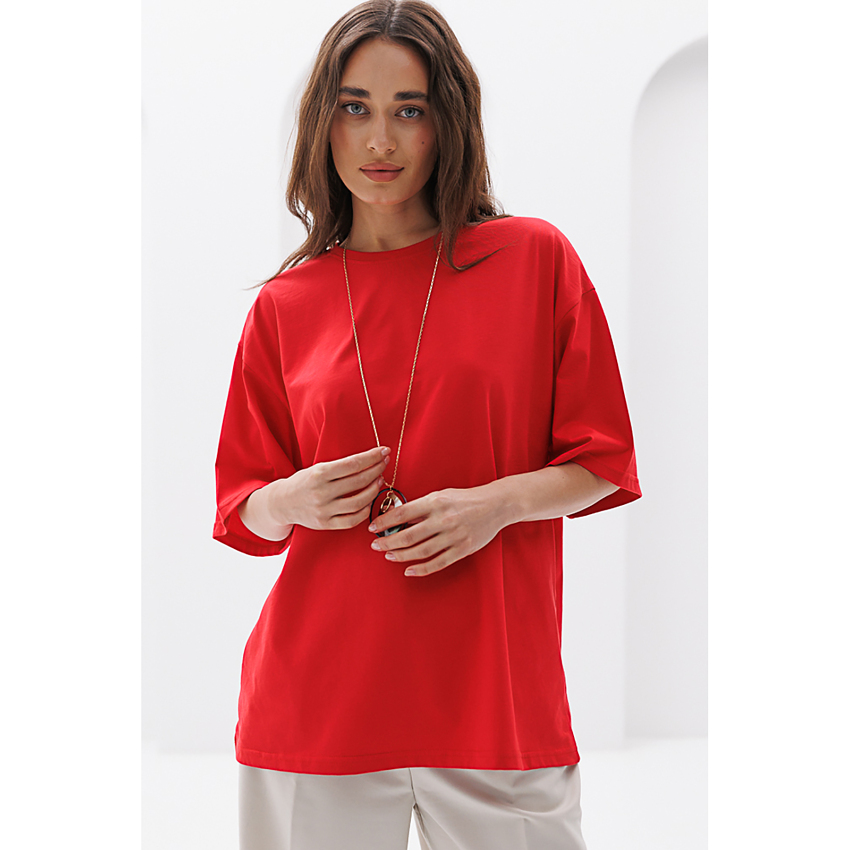 Матеріал Супрем Склад 95% бавовна, 5% спандекс Довжина виробу 67 см - спереду; 69 см - ззаду Довжина рукава 22,5 см Ширина під проймами 62 см Силует Прямий