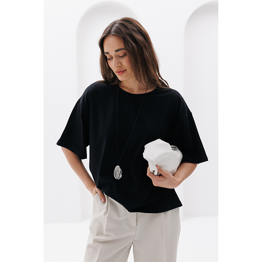 Матеріал Супрем Склад 95% бавовна, 5% спандекс Довжина виробу 67 см - спереду; 69 см - ззаду Довжина рукава 22,5 см Ширина під проймами 62 см Силует Прямий
