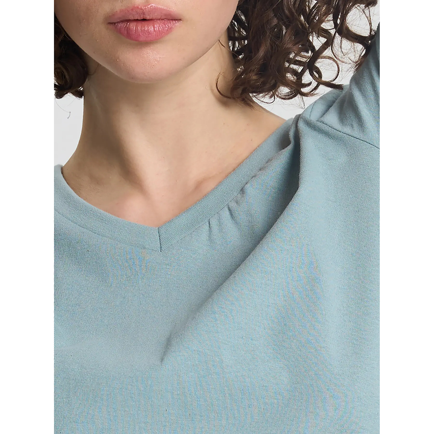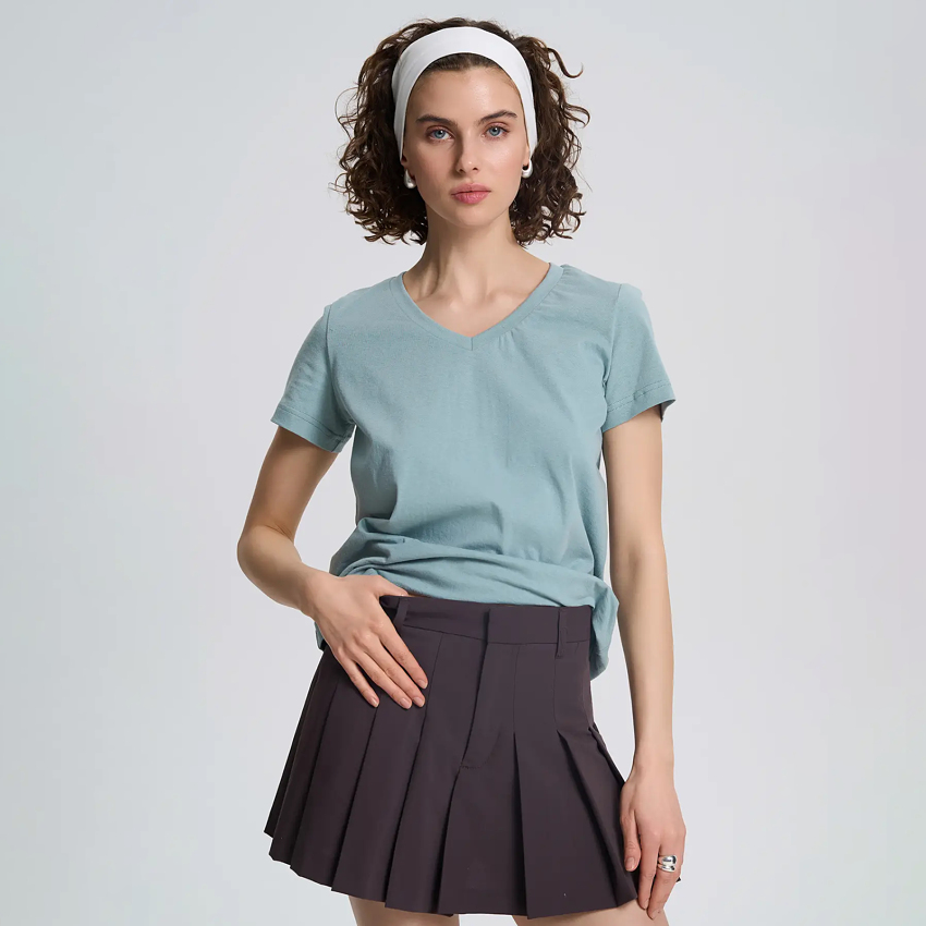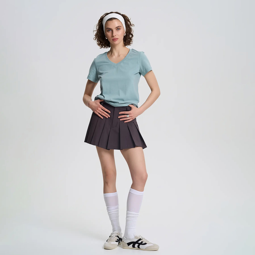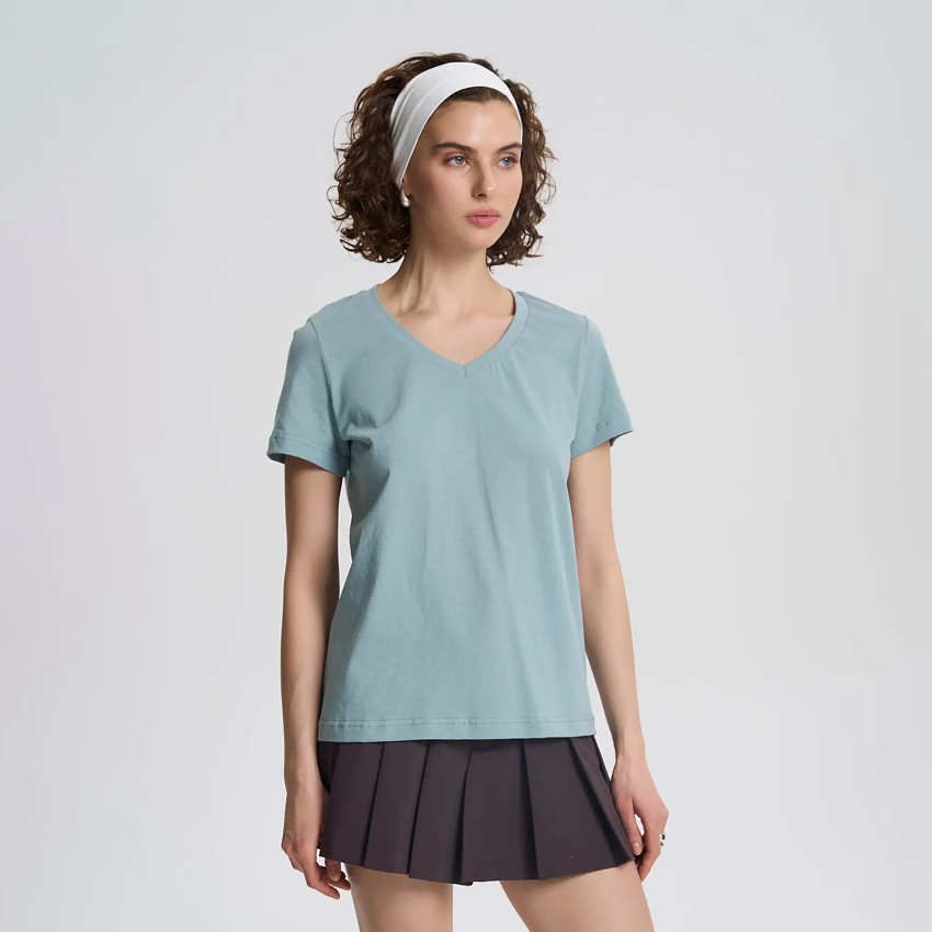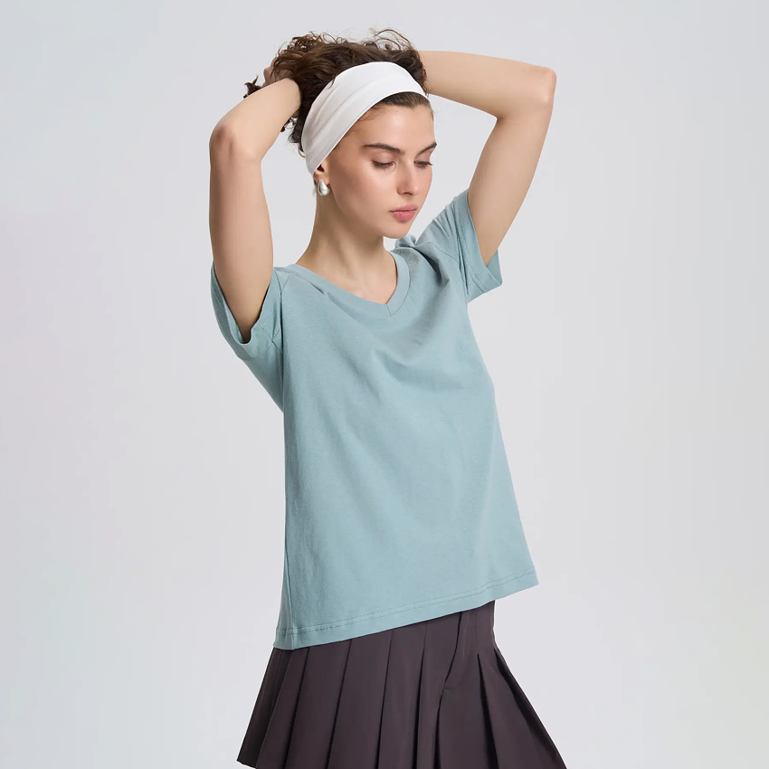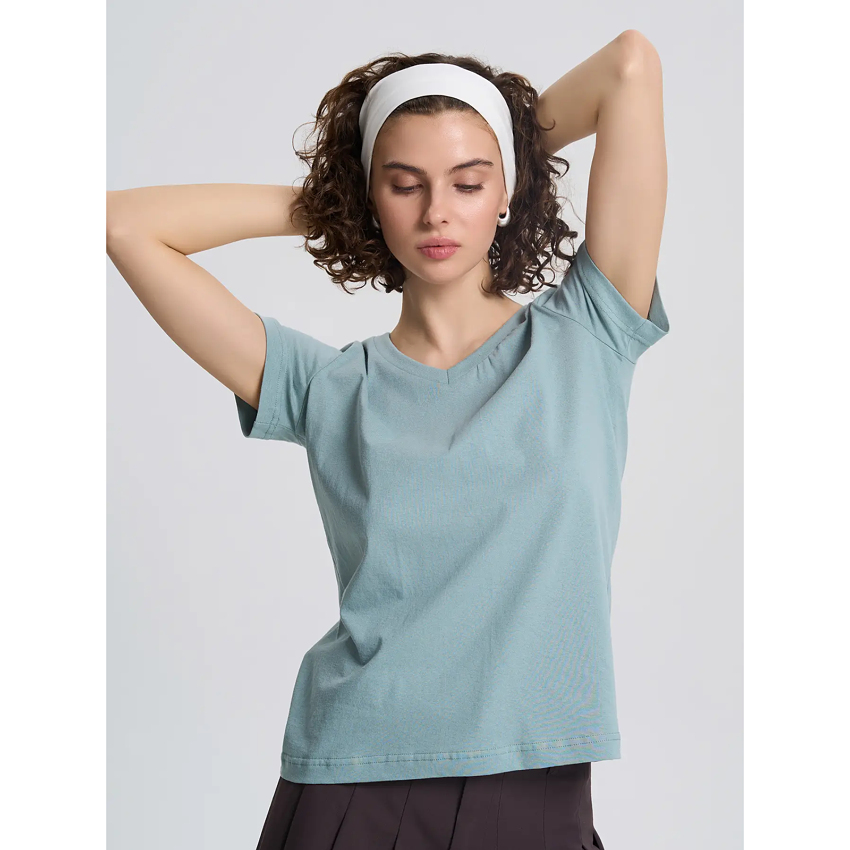 Футболка вільної посадки із трикутним вирізом є найлегшою у лінійці бренду. Має стандартну довжину. Підходить для носіння в спекотну погоду та для створення додаткового шару в інших образах.