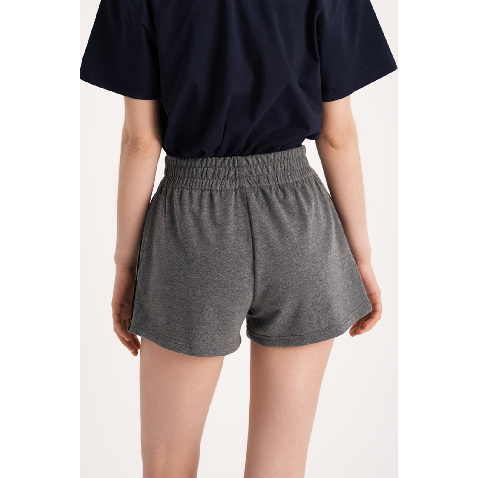 Жіночі шорти з двонитки в спортивному стилі. Зручні та комфортні шорти підійдуть для активних спортивних занять, для домашнього відпочинку, стильних повсякденних образів. Відмінно поєднуються з майками, футболками, світшотами та худі. Модель прямого крою з кишенями. У пояс вшита гумка і доданий плоский шнурок для регулювання розміру. Для декору використовувалися вертикальні смуги контрастного кольору.