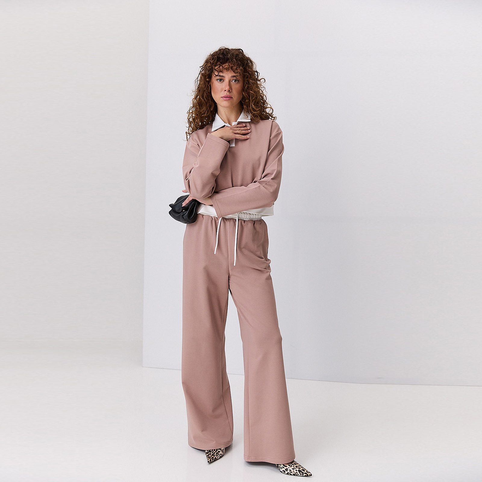 Силует: Прямий; Ширина під проймами: S-M - 52 см; L-ХL - 56 см; Довжина рукава: 56 см; Ширина по поясу: S-M - 36 см; L-ХL - 38 см; Ширина по стегнам: S-M - 54 см; L-ХL - 58 см; Довжина низу: S-M - 108 см; L-ХL - 108,5 см - по бічному шву; 77,5 см - по внутрішньому шву; Довжина верху: 50 см