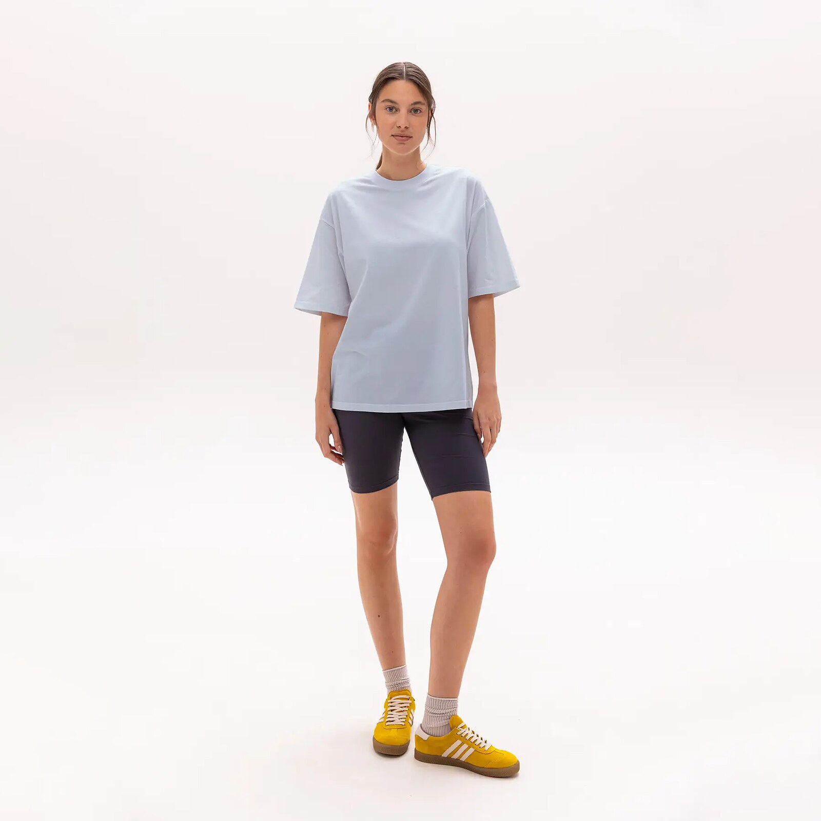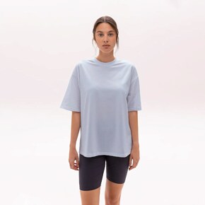 Футболка крою оверсайз із круглим вирізом із подовженим рукавом. Втілює сучасну універсальність та свободу руху. Влучно поєднується як із легінсами та велосипедками, так і з обʼємними джогерами.
