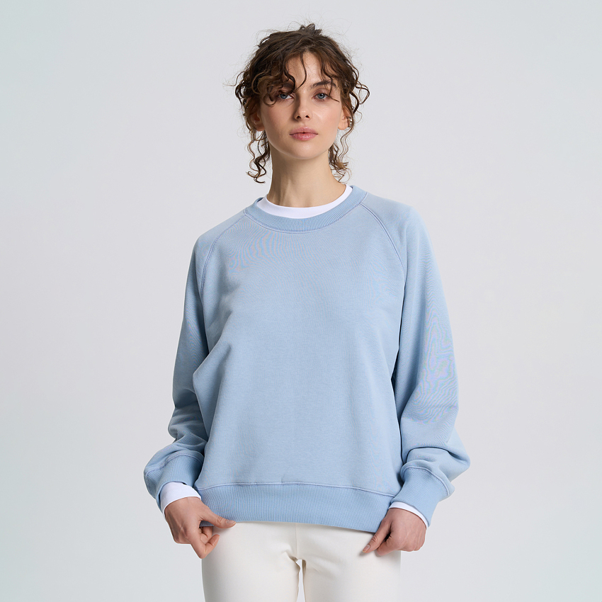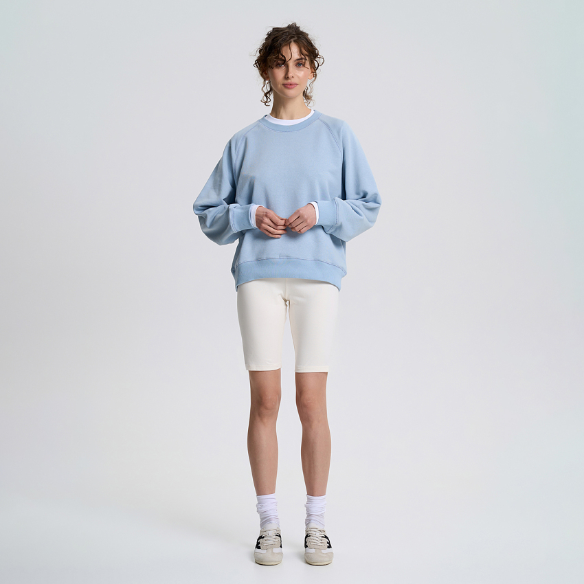 Світшот вільного крою з опущеною лінією плеча та розширеними рукавами поєднує стиль та комфорт. Вільний крій вигідно пасує до будь-якого типу фігури. Широкий рукав стандартної довжини не сковує рухів, водночас додає образу акуратного об'єму.